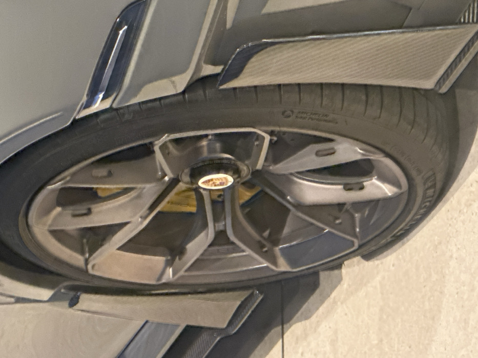 - "The image displays a close-up view of the front or rear passenger-side wheel and lower body section of a light grey Porsche sports car, located in the city of Tashkent, Uzbekistan" by FM-doFsC2, licensed under CC BY 4.0