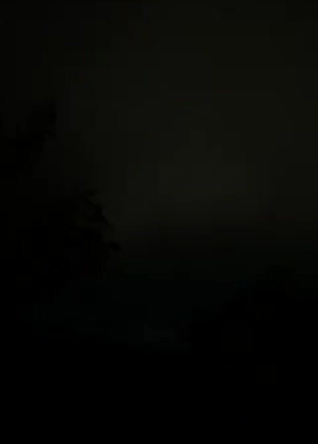 The video begins with a shot of a dusk sky with purple-tinged clouds and the silhouette of a tree branch and a building against it. The camera quickly loses focus and the scene transitions to near-total darkness, with only faint shapes of trees visible against a dark gray background, suggesting an extremely low-light or nighttime environment.