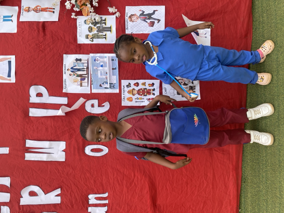 - "This image, captured in Markurdi, Nigeria, features two young children standing side-by-side against a red fabric backdrop adorned with educational materials" by FM-6MdWB2, licensed under CC BY 4.0