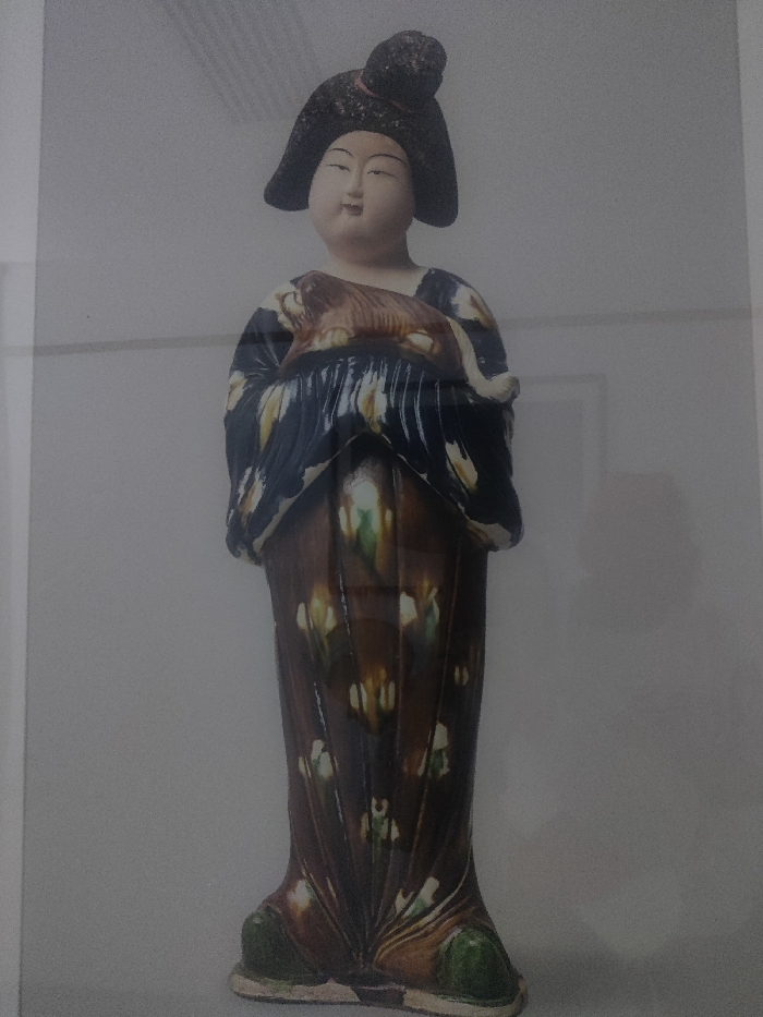 - "A full-body ceramic figurine, depicting an ancient Chinese noblewoman, stands erect and is displayed against a plain, light-colored background within Daxing District, China" by FM-XHzLC2, licensed under CC BY 4.0