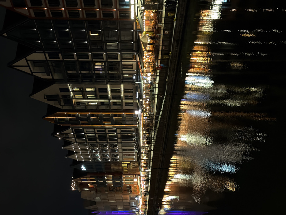 - "This image captures a nighttime view of the Motława River waterfront on Wyspa Spichrzów (Granary Island) in Gdańsk, Poland" by FM-nKrUC2, licensed under CC BY 4.0