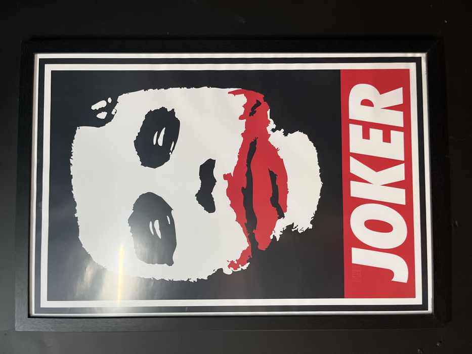 - "Framed poster featuring a stylized rendition of the Joker's face in white, black, and red against a black background" by FM-R1zri2, licensed under CC BY 4.0