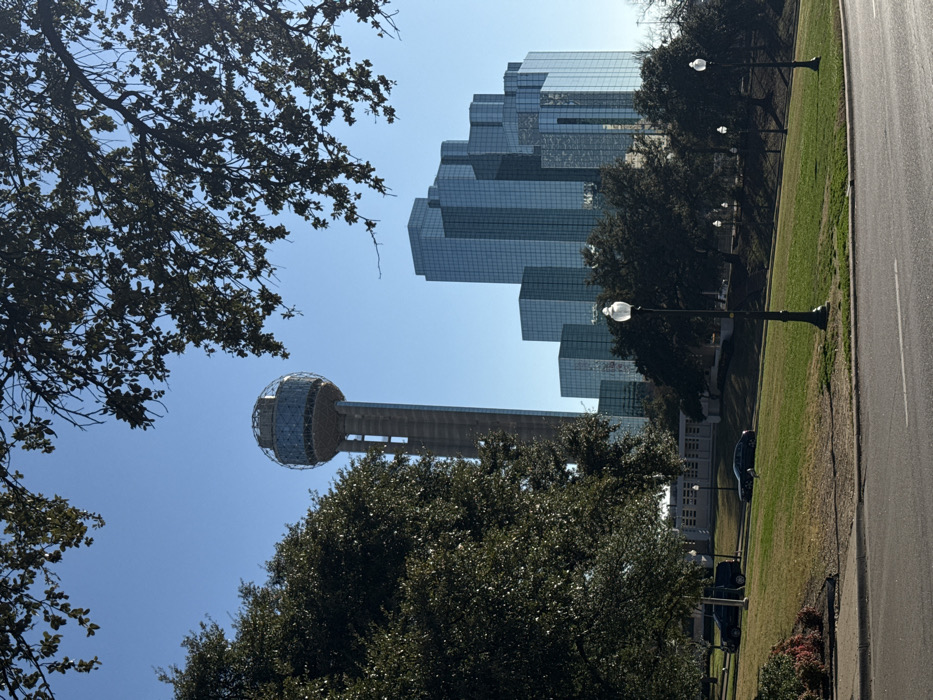 - "A cityscape features the Reunion Tower prominently, a spherical structure atop a tall, slender column" by FM-avfjN2, licensed under CC BY 4.0