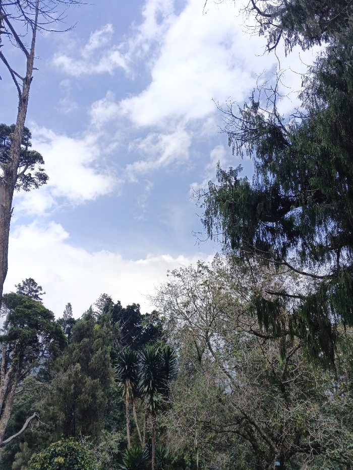 - "A view upwards through trees reveals a sky filled with wispy clouds and patches of bright blue" by FM-SJTVw1, licensed under CC BY 4.0