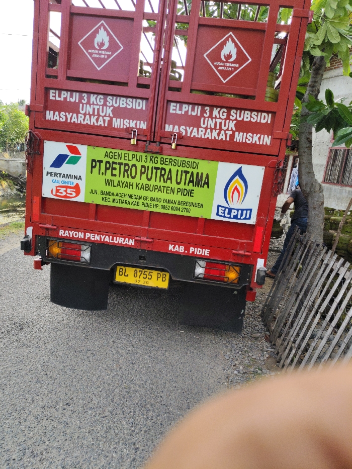 - "A red utility truck, identified as a subsidized 3kg LPG distributor for the poor, is parked on an asphalt road in Jurong Pante, Indonesia" by FM-bZrK33, licensed under CC BY 4.0