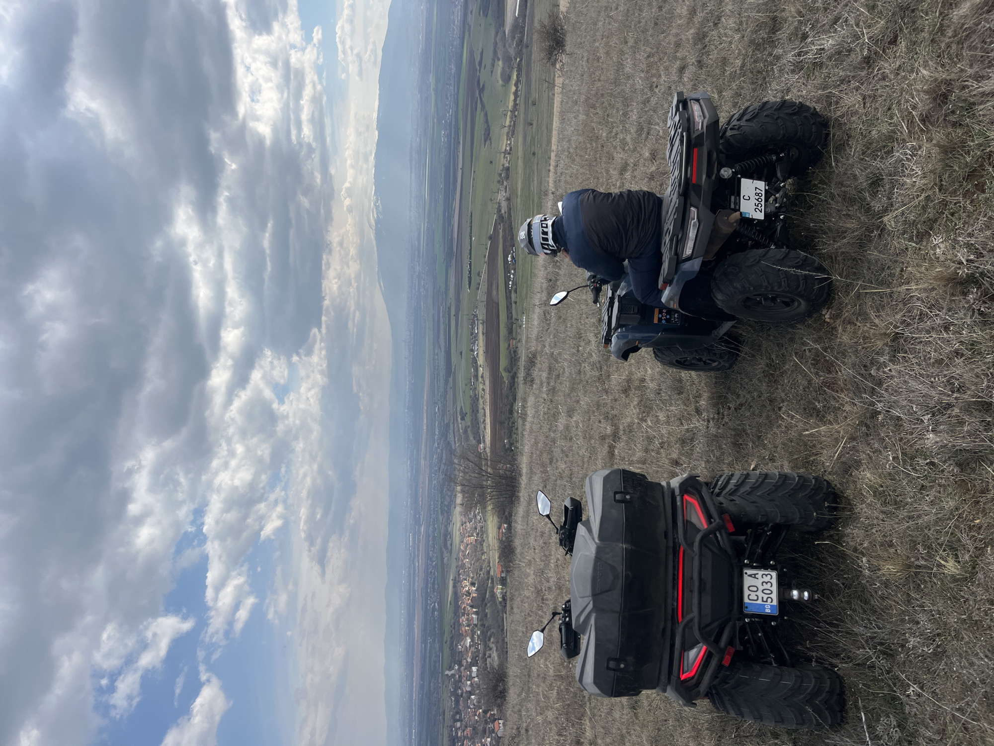 - "Two dark-colored All-Terrain Vehicles (ATVs) are positioned on a dry, brown-yellow grassy hillside overlooking the city of Balsha, Bulgaria, and its surrounding valley" by FM-lpmjW2, licensed under CC BY 4.0