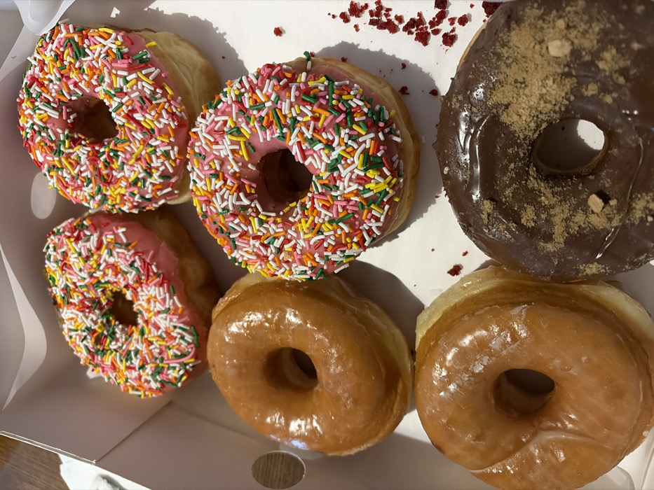 A box of six donuts