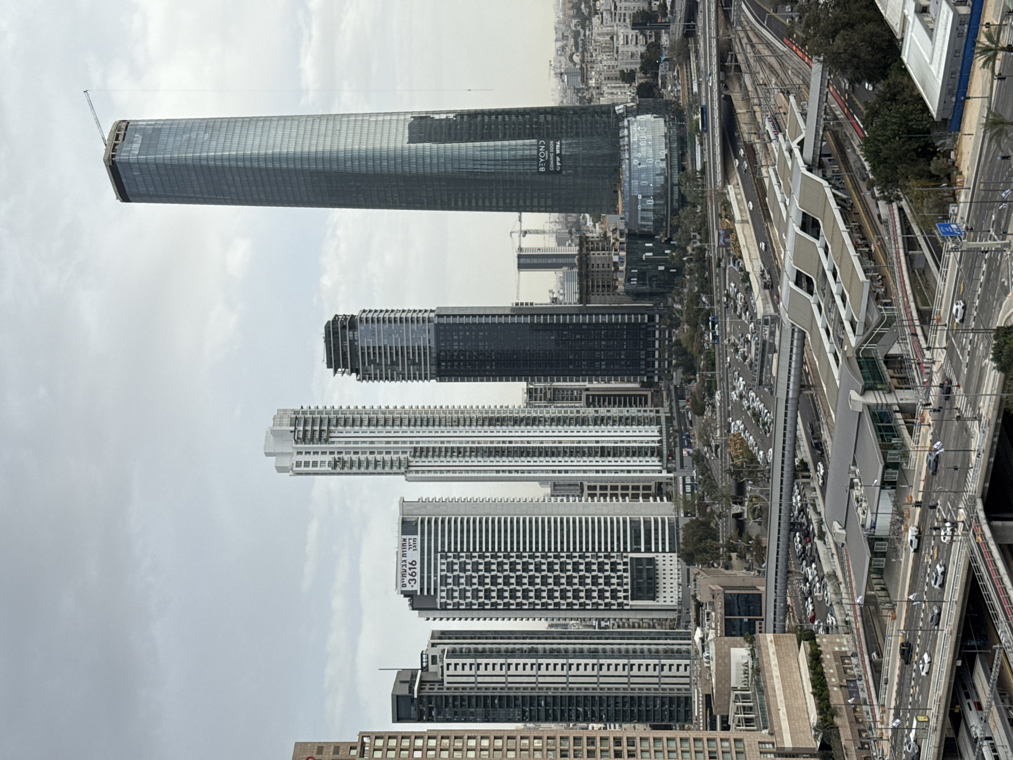 - "This image captures a wide aerial view of a densely developed urban area, specifically the vicinity of the Tel Aviv HaShalom railway station and the Azrieli Center, situated on the border of Tel Aviv and Ramat Gan, Israel" by FM-IGn7I3, licensed under CC BY 4.0