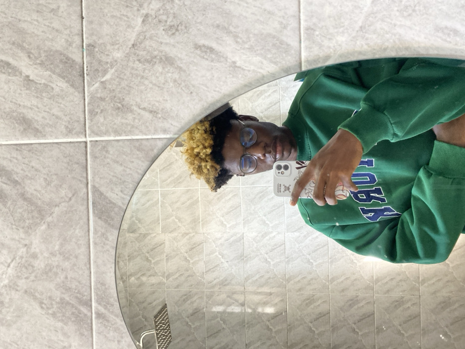 - "A single individual is depicted in a mirror selfie taken within what appears to be a bathroom in the city of Igboefon, Nigeria" by FM-ZL5X22, licensed under CC BY 4.0