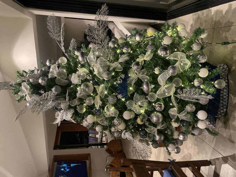 - "A Christmas tree adorned with silver and white ornaments" by FM-TO6gh1, licensed under CC BY 4.0