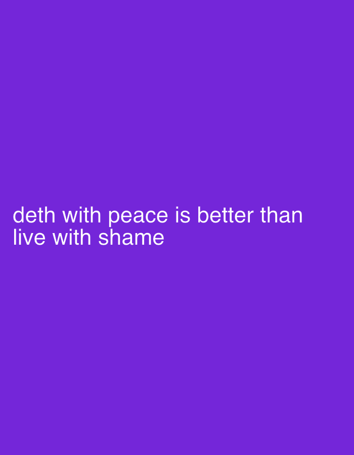 The image displays a solid purple background. White, sans-serif text is centered on the left side of the lower half of the image. The text reads: "deth with peace is better than live with shame". There are no discernible people, objects, actions, interactions, or environmental features beyond the text and the uniform colored background. The image does not depict any physical location, therefore no details regarding the city of Sioni, Georgia, can be provided or inferred from its content.