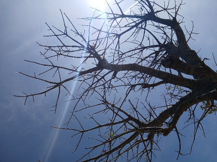 - "A low-angle photograph displays the upper trunk and extensive network of bare branches of a deciduous tree, silhouetted against a clear, bright blue sky in Mista Ali, Nigeria" by FM-EStUx1, licensed under CC BY 4.0
