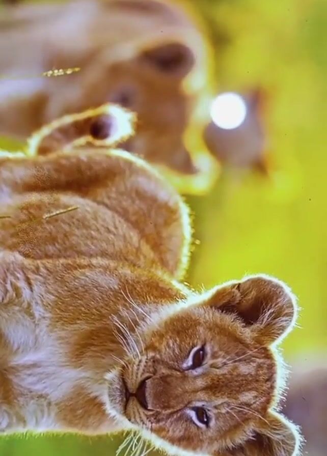 lion cub lying down, followed by a shot of a lynx.