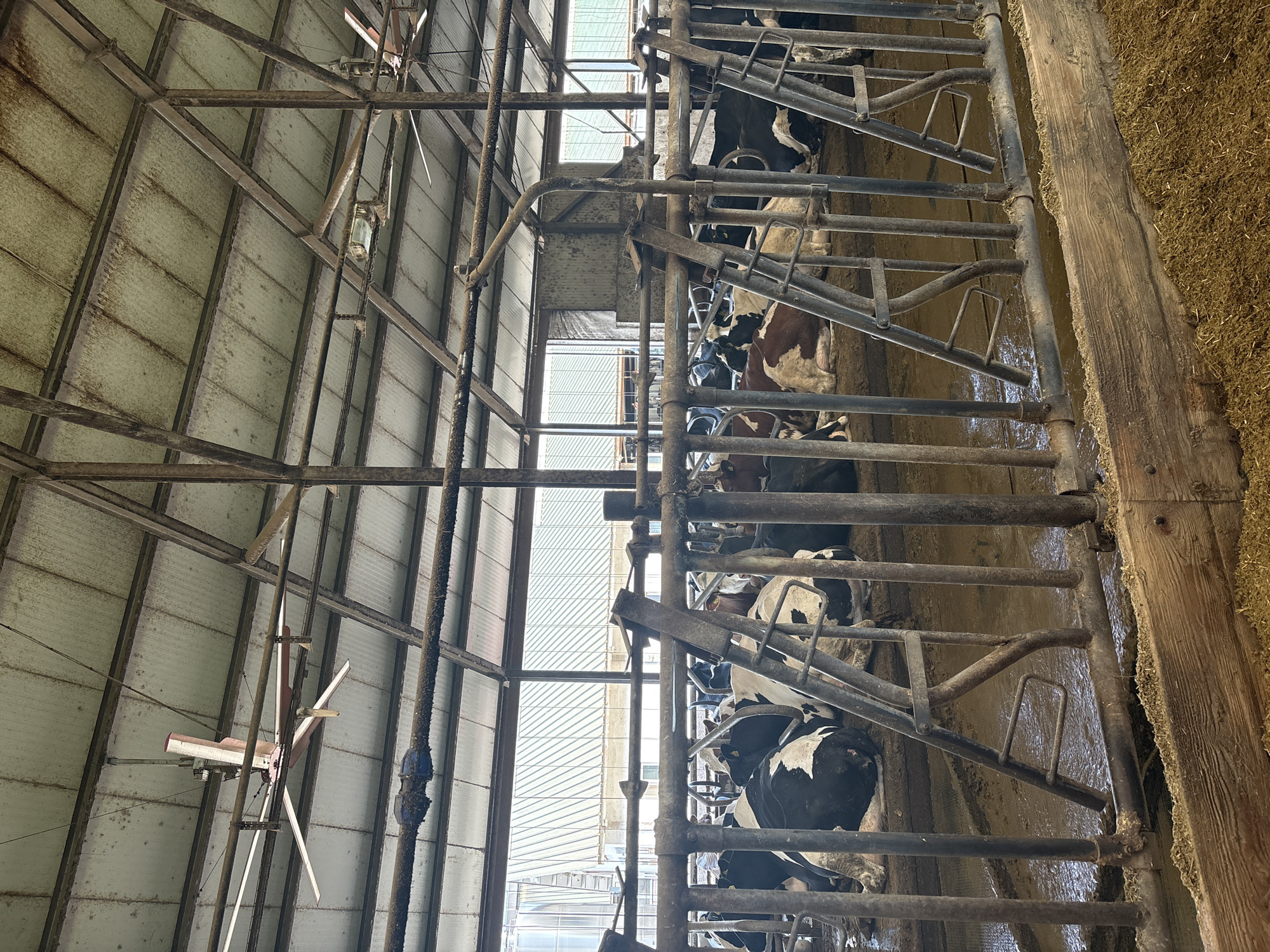 - "The interior of a barn in Unknown, Unknown, shows a row of Holstein cows standing in their stalls" by FM-aYcbJ2, licensed under CC BY 4.0