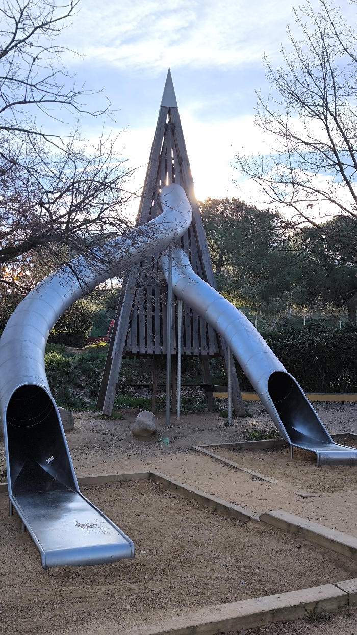 - "This image depicts an unoccupied outdoor playground located in Cerdanyola del Vallès, Spain, under a partially cloudy sky with sunlight originating from behind the central structure" by FM-WId4x1, licensed under CC BY 4.0