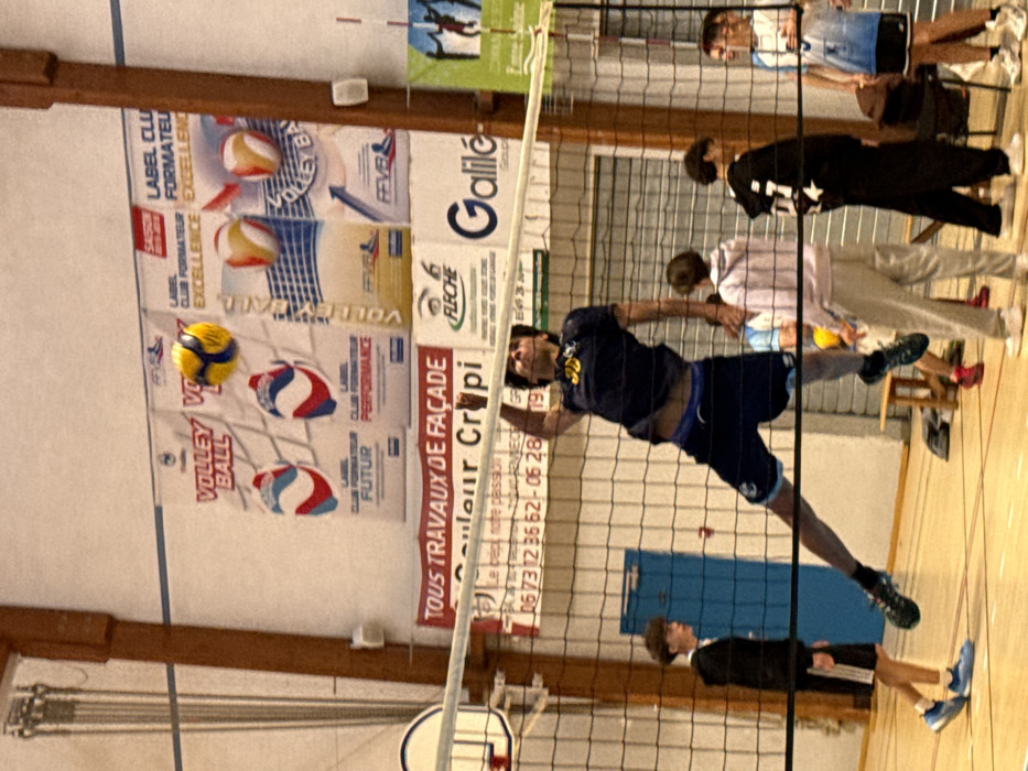 The image depicts an active scene within an indoor sports facility located in Sennecey-le-Grand, France