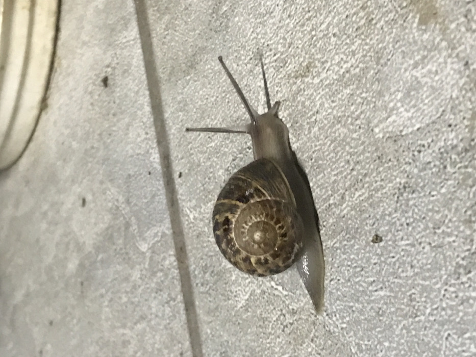 - "A land snail, identified by its brown, spiraled shell with distinct darker bands and lighter interstitial areas, is captured in motion on a light grey, textured surface" by FM-4m08G2, licensed under CC BY 4.0