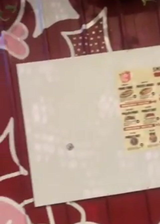 exterior of Smokey Banh Mi restaurant. The exterior has maroon, white and pink decor with food items listed on a board. There is a sign in the upper right corner that says Smokey in neon letters. The video pans over to show the entrance to the restaurant with the words “Feed Your Belief” in neon letters above the counter. A group of people is seated at a table outside in a dimly lit outdoor area. A person with curly hair and glasses is visible in the foreground.