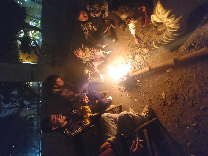 - "A nighttime scene in an urban outdoor setting in Dhaka, Bangladesh, depicts six male individuals gathered around a ground-level bonfire" by FM-PRZ6s1, licensed under CC BY 4.0