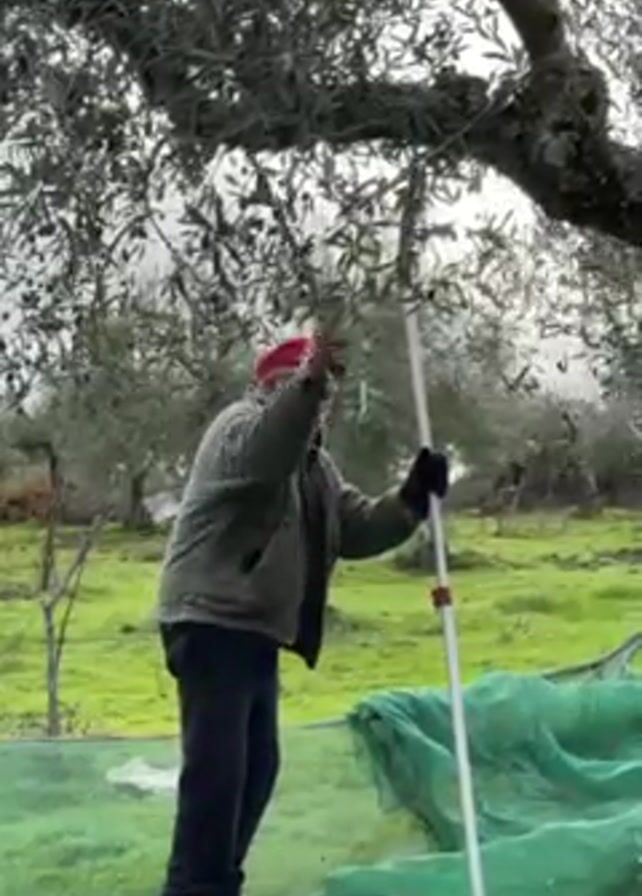 - "An elderly man harvests olives from a tree, assisted by a long pole and a large green net spread out on the ground below" by FM-euyLP2, licensed under CC BY 4.0