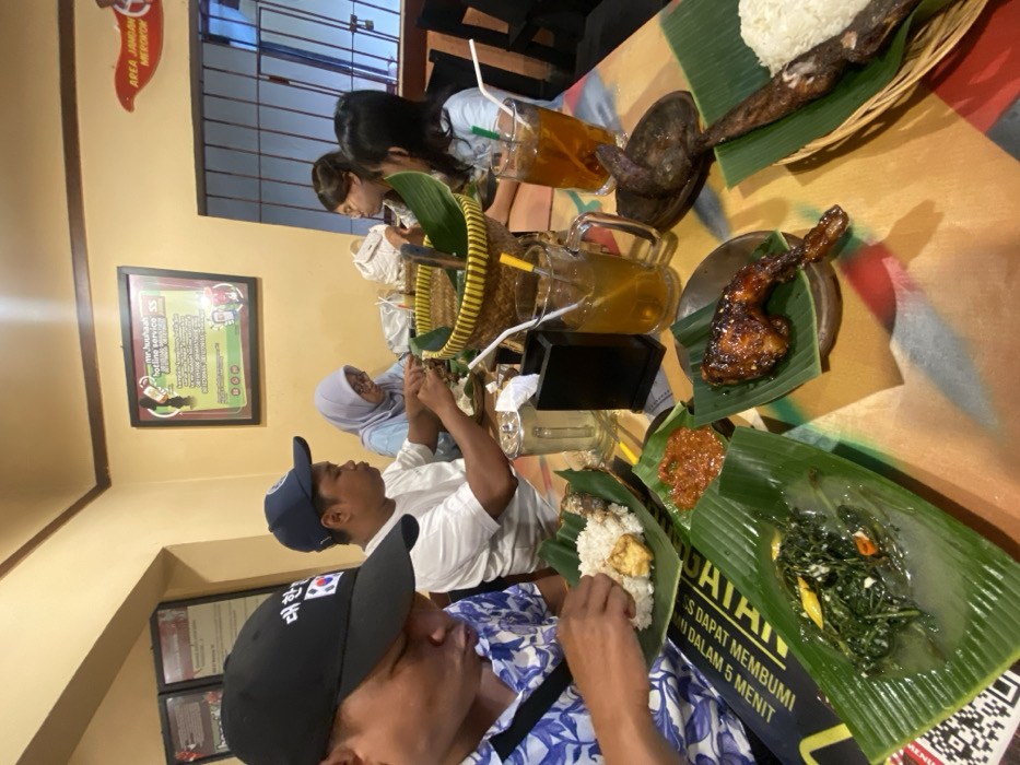 The image depicts an indoor dining scene at a restaurant in Malang, Indonesia