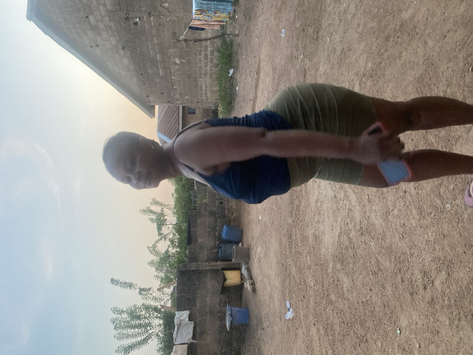 The scene depicts an outdoor residential area in Idiroko, Nigeria, during either sunrise or sunset, indicated by the soft, warm light in the sky