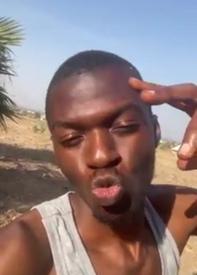 A close-up video shows a young, dark-skinned man wearing a grey tank top