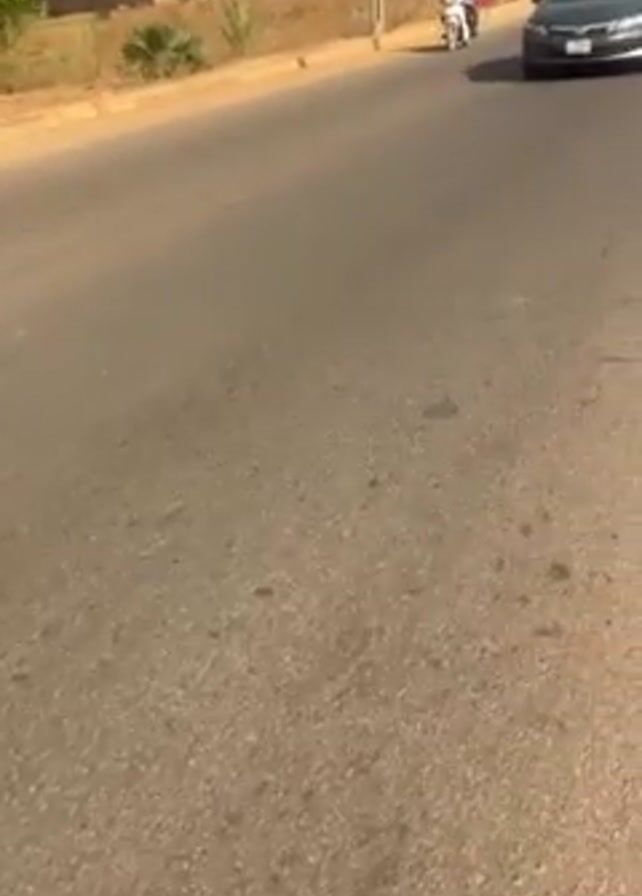 black or dark gray Honda Civic driving on an asphalt road in a rural area. The road is relatively empty with a motorcycle in the distance. The car passes the camera. The environment includes sandy or dirt banks, sparse vegetation, and residential buildings. The sky is clear and the light is bright.