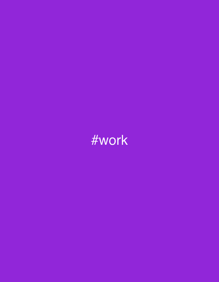 The image displays a solid, uniform purple background. Centered horizontally on this background is the white text "#work". No people, physical objects, actions, or interactions are present. The environment is abstract, consisting solely of a color field with text. A specific location within Modiin-Maccabim-Reut, Israel, or any other physical place, cannot be determined from the image content.