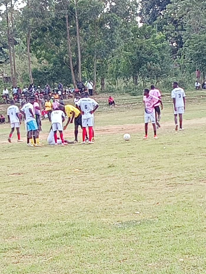 The image displays an outdoor football (soccer) scene in Lumakanda ward, Kenya