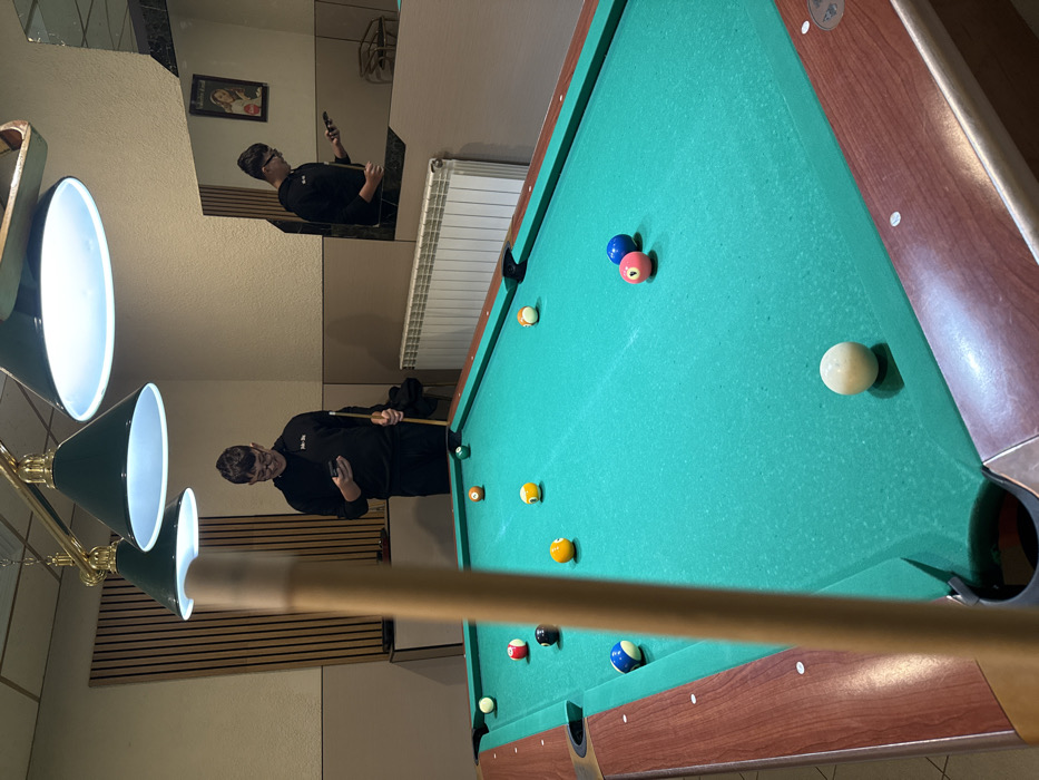 - "The image depicts an indoor recreational setting within the city of Berkovitsa, Bulgaria, specifically a room furnished with a pool table" by FM-8dLCR2, licensed under CC BY 4.0
