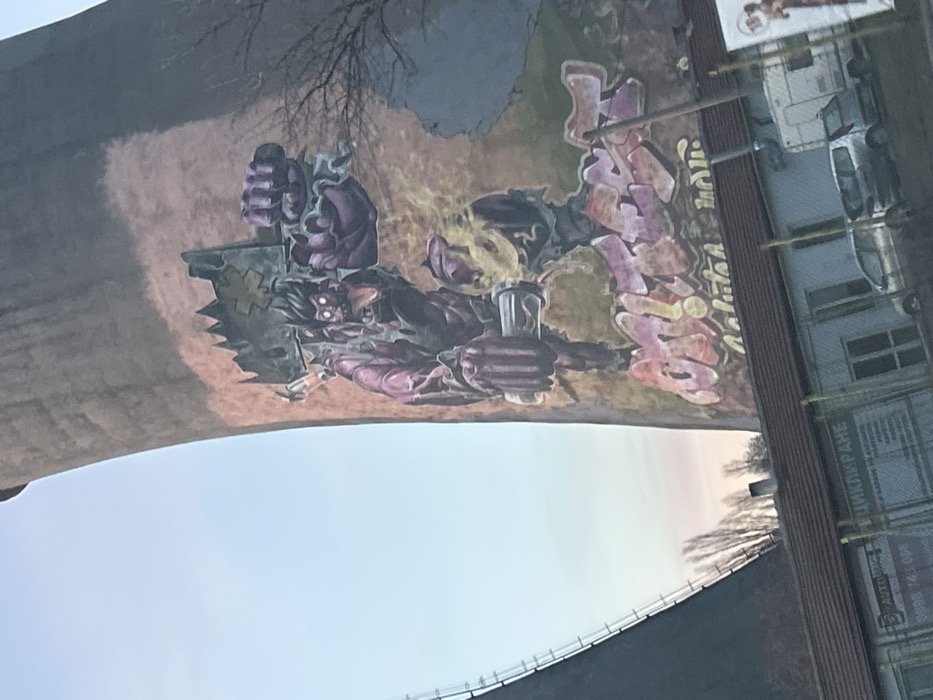 - "The image displays a large, vibrant graffiti mural covering a significant section of a tall, grey, hyperbolic cooling tower" by FM-n525b2, licensed under CC BY 4.0