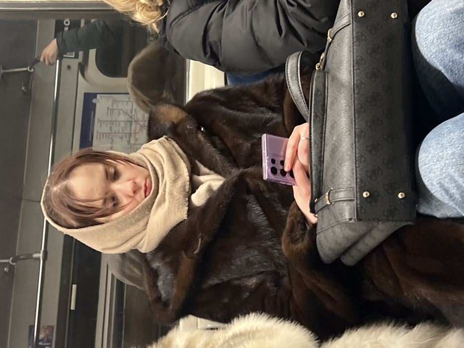 - "A person in a fur coat and headscarf sits on public transport" by FM-4Mf512, licensed under CC BY 4.0