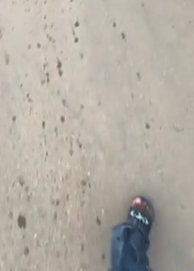 first-person perspective of someone walking down a paved road