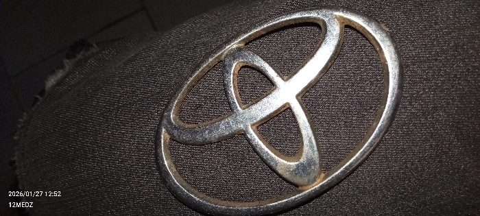 The scene, observed in Narayi, Nigeria, at 12:52 on January 27, 2026, presents a close-up view of a metallic Toyota emblem