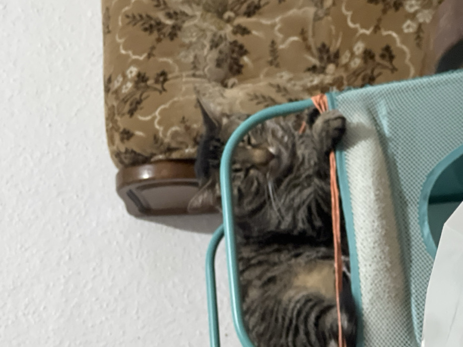 - "A tabby cat rests in a blue pet hammock, its paw draped over the top" by FM-uZazy2, licensed under CC BY 4.0