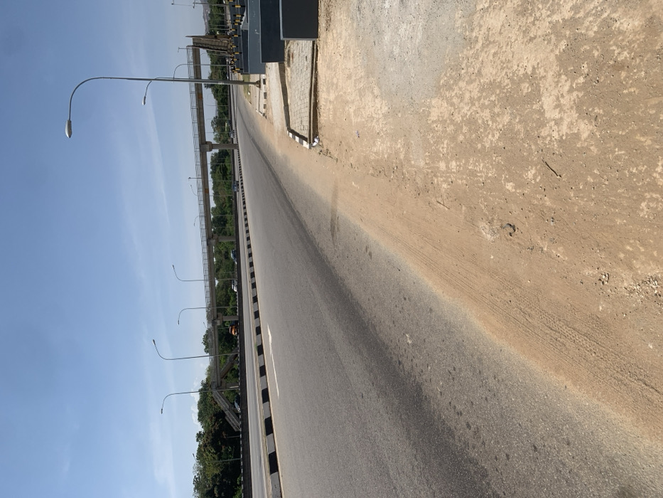 This image captures a multi-lane asphalt road in Jiru, Nigeria, under a clear blue sky