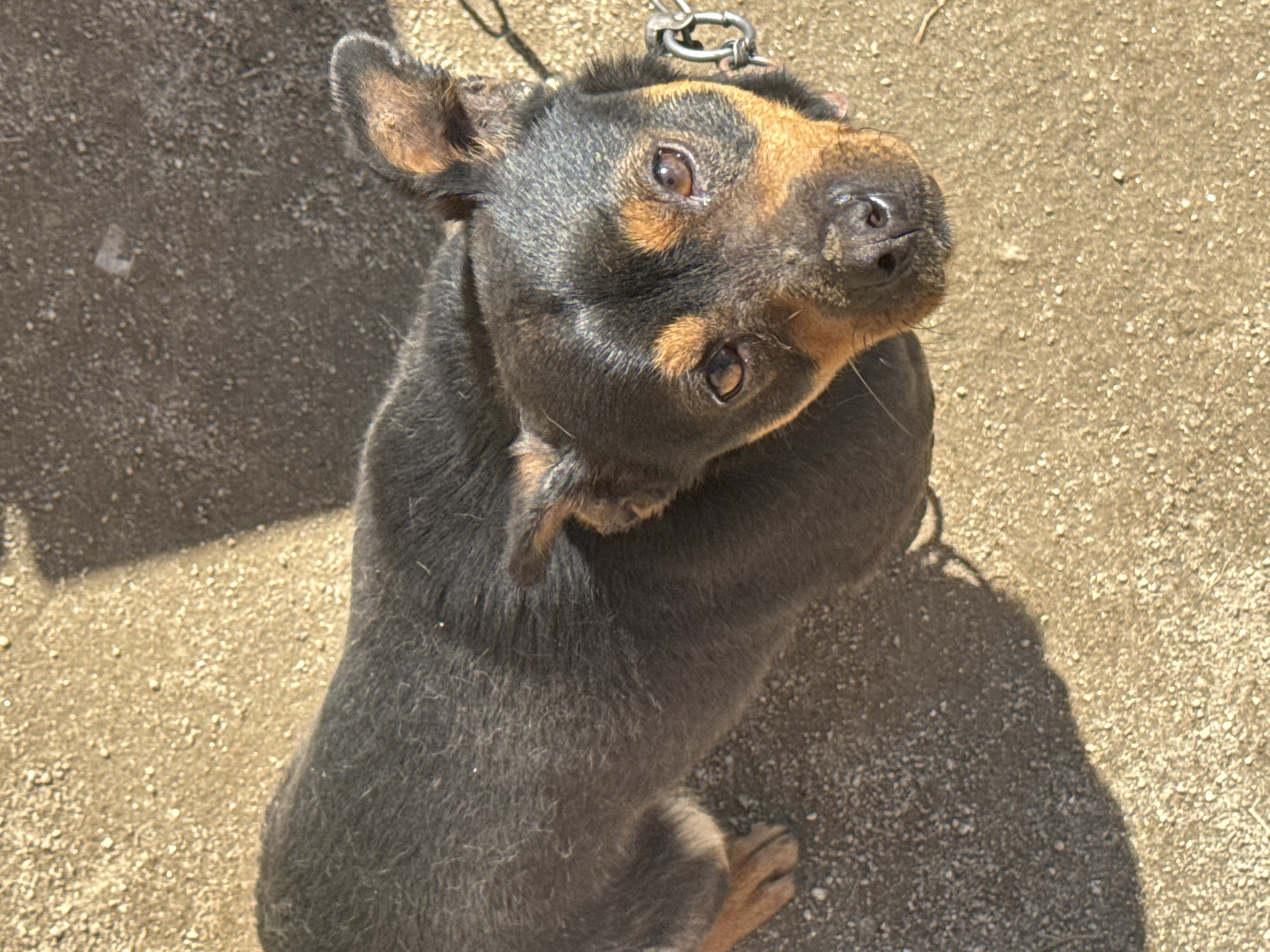 - "A medium-sized, short-haired dog with black and tan markings is standing on a gravel-covered surface" by FM-tZgMG3, licensed under CC BY 4.0