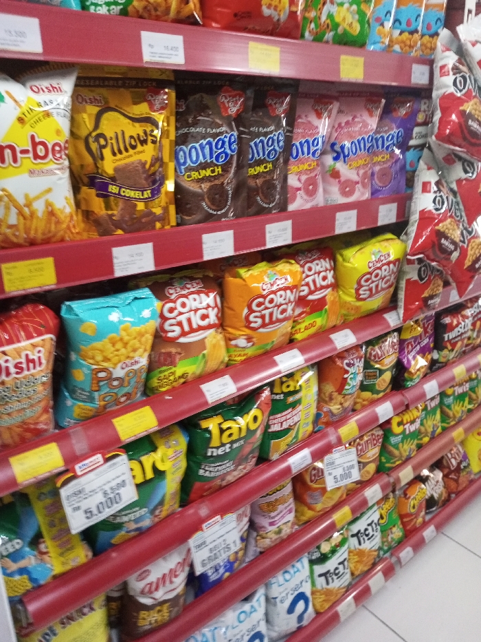 - "A well-stocked grocery store shelf displays a variety of snack foods" by FM-3mobU2, licensed under CC BY 4.0