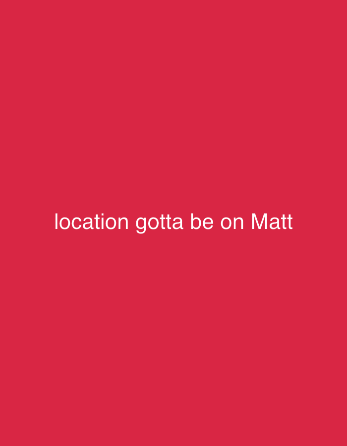 A text overlay on a solid red background states "location gotta be on Matt". The image lacks further details.