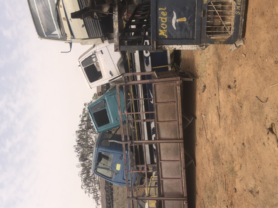 The image documents an outdoor scene in Tukur Tukur, Nigeria, featuring multiple disassembled vehicle components on reddish-brown dirt