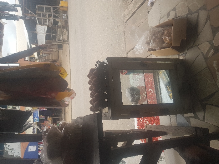 This image depicts a street-level commercial scene in Lokoja, Nigeria, likely observed from within a retail space or stall