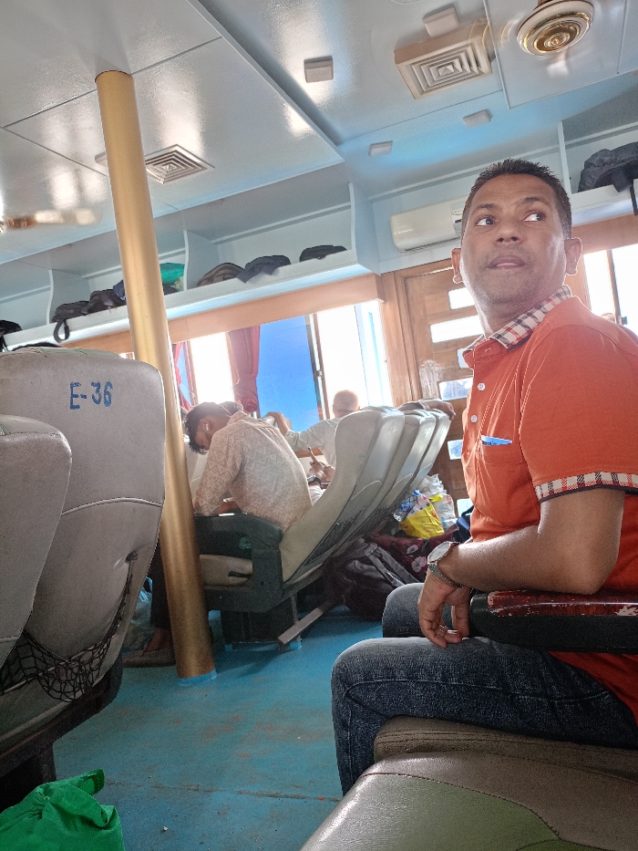 interior of a ferry, likely in Bangladesh, at the coordinates provided