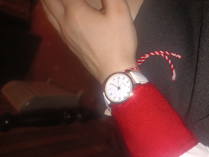 - "A close-up, angled photograph captures a human left arm and wrist, adorned with a wristwatch and a traditional Bulgarian Martenitsa bracelet" by FM-JPM2z2, licensed under CC BY 4.0