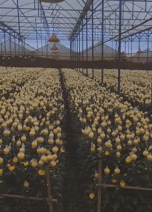 - "large greenhouse filled with rows of yellow chrysanthemums" by FM-yj6ly1, licensed under CC BY 4.0