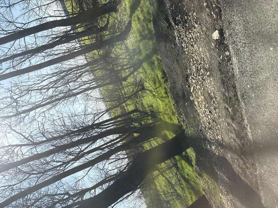 This image depicts an outdoor, rural landscape under bright daylight, likely during late winter or early spring
