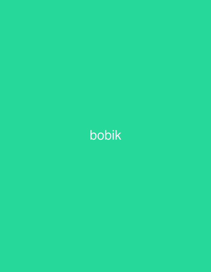 A solid, vibrant green background dominates the image. Centered horizontally and vertically, the word "bobik" is displayed in a clean, sans-serif typeface and a crisp, bright white color. The text contrasts sharply with the green backdrop, making it easily readable. The overall aesthetic is minimalist and clean.