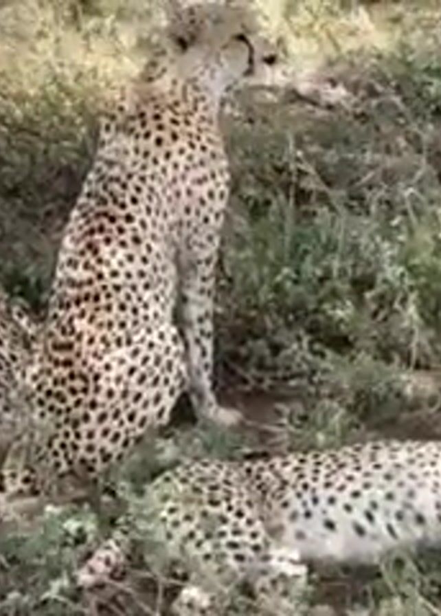 - "three cheetahs resting on the ground in a grassy, partially shaded area" by FM-ohOUo2, licensed under CC BY 4.0