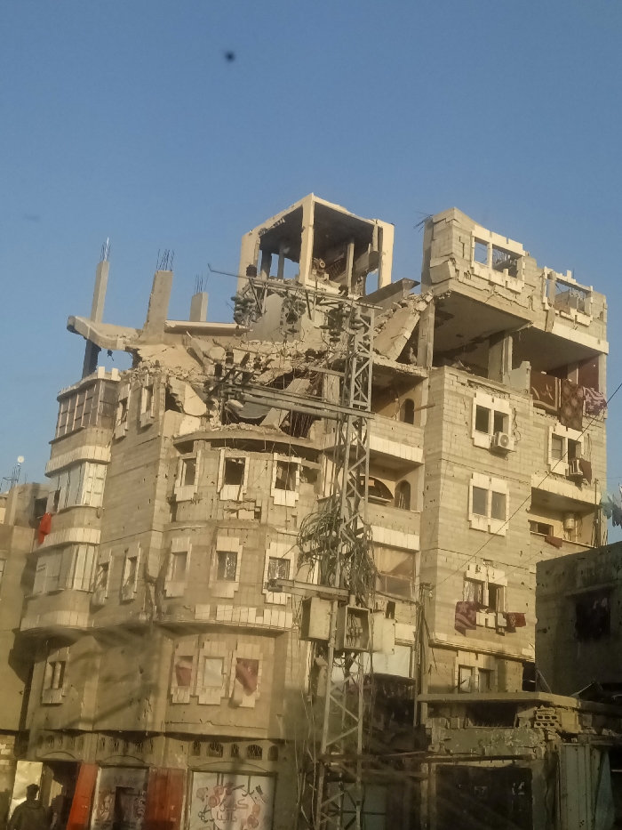 - "A severely damaged building stands under a bright blue sky" by FM-cV3b62, licensed under CC BY 4.0