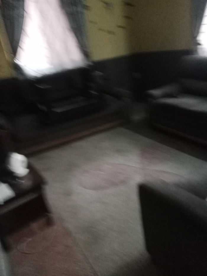 The image presents a heavily blurred interior residential scene, likely a living room, located in the city of Unknown, Unknown